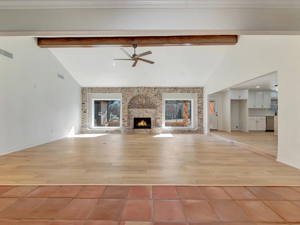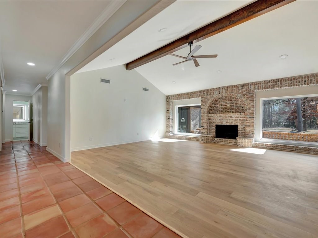 Stunning golf course home located in the prestigious Crown Colony subdivision overlooking the 15th hole. This beautifully renovated residence blends classic architecture with modern finishes, creating a move in ready home that feels timeless and fresh. Step inside to an expansive open living area featuring vaulted ceilings with exposed beams, and a striking brick fireplace framed by oversized windows that showcase the peaceful golf course views and flood the space with natural light. The fully updated kitchen offers sleek cabinetry, stone countertops and was designed to entertain. The oversized primary suite is a true retreat highlighted by dramatic arched windows. The state-of-the-art primary bathroom delivers a spa like experience with designer stone, custom finishes, luxury fixtures and a statement walk in shower. Additional bedrooms are spacious and inviting. Outside you will enjoy the covered patio overlooking the manicured green.