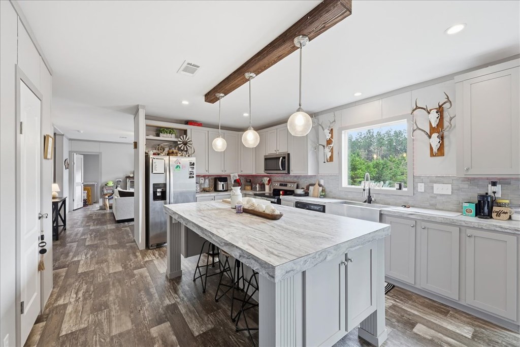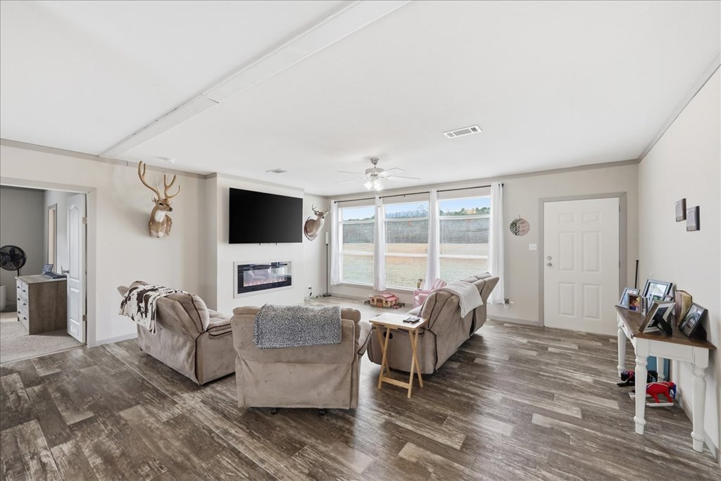 PRICE REDUCED! Spacious home on over 12 acres of partially cleared, partially fenced land making this the perfect retreat for comfort and privacy! Boasting 4 bedrooms and 2 full bathrooms, the home features double sinks in both baths, with the master suite offering a luxurious soaking tub and separate shower. Spanning over 2,400 sq. ft., this residence provides a versatile layout that includes a second living room and a dedicated home office, giving you ample space to relax, work, and enjoy. Don't miss the opportunity to make this move-in ready home with privacy and many possibilities of country living yours!