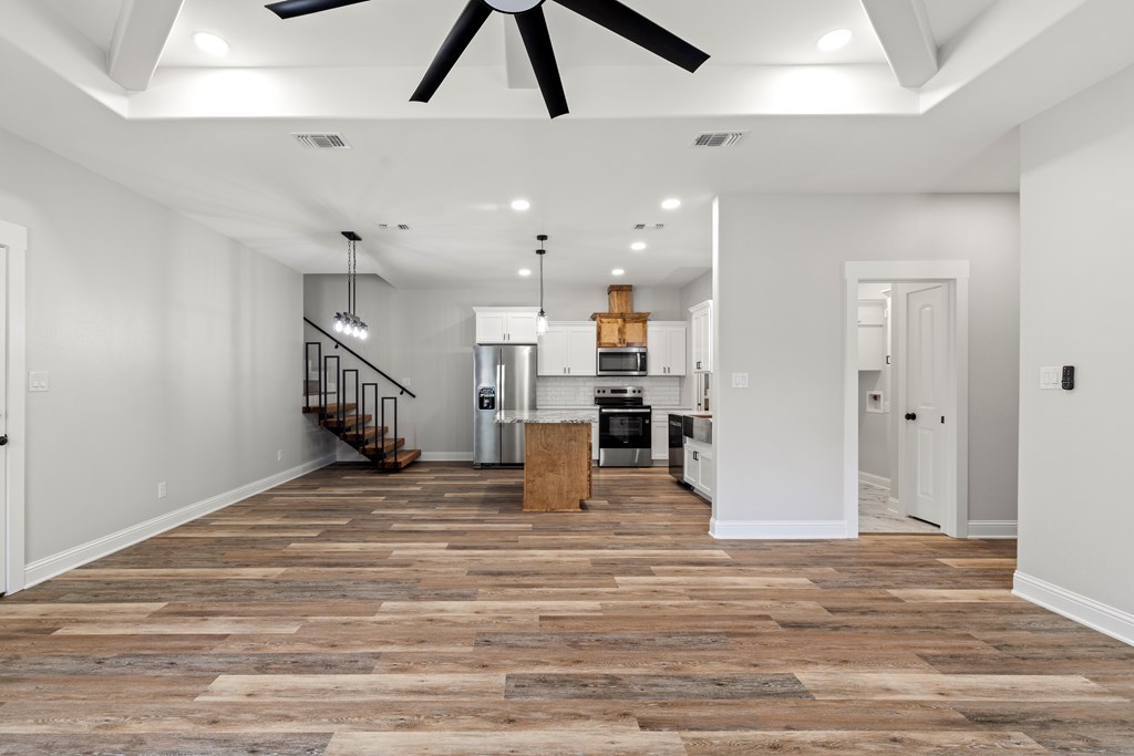 Brand new construction townhome on Burk Street in Nacogdoches offering modern style and functional design. This 4-bedroom, 2-bath home features granite countertops, vinyl plank and tile flooring, tiled showers, and sleek modern appliances and finishes throughout. The open-concept living and kitchen area creates the perfect space for entertaining, complete with a built-in pantry and spacious laundry room for added convenience. Three bedrooms and two baths are located down the hall from the living area, while a generously sized fourth bedroom with closet and extra storage is situated upstairs above the garage — ideal for a guest suite, home office, or flex space. Move-in ready with quality craftsmanship and thoughtful details throughout.