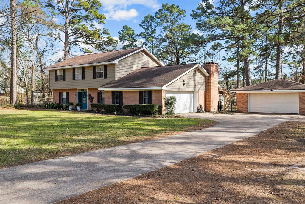 Welcome to 283 Fairview Drive—where space, comfort, and country charm come together on 1.35 acres. This spacious two-story home offers fantastic curb appeal and plenty of room to live, gather, and grow. Inside, you'll find a formal dining room ready for hosting, a sunny breakfast nook perfect for slow mornings, and a generous living area with fireplace that invites everyone to relax and stay awhile. The flexible floorplan features one bedroom, an attached office, and a half bath downstairs, while four additional bedrooms—including the primary suite—are located upstairs. Enjoy the convenience of an attached 2-car garage plus an additional detached 2-car garage—ideal for extra vehicles, storage, hobbies, or workshop space. Step outside to the fabulous covered back porch overlooking a wide, open backyard shaded by mature trees—perfect for gardening, chickens, 4-H projects, or creating your own 4-H projects, or creating your own backyard retreat. Diboll address but zoned Lufkin ISD.