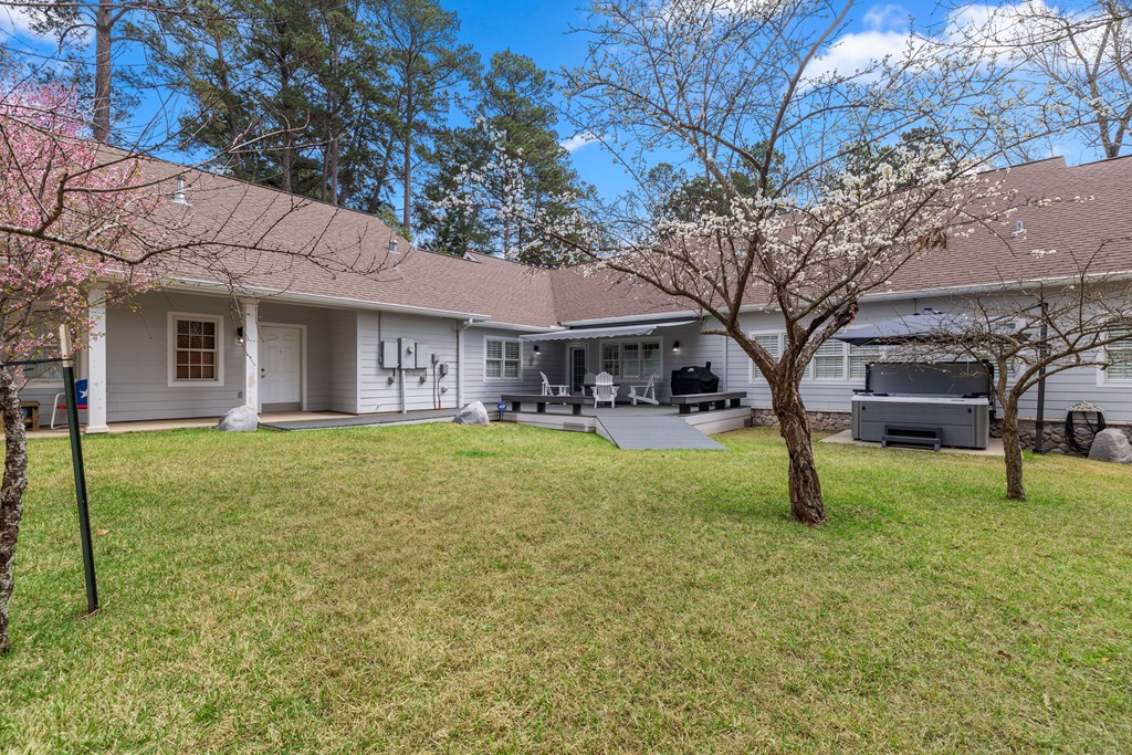 A remarkable 5-bedroom, 4.5-bath home in NE Nacogdoches, nestled in the desirable Pinecrest Subdivision. Situated on two lots and backing up to the SFA Perpetual Forest, this property offers backyard privacy and serene views. The main home features 3 bedrooms and 2.5 baths with a split-bedroom arrangement and a bonus room upstairs—perfect for a game room, office, or additional living space. The attached handicap-accessible apartment includes 2 bedrooms, 2 bathrooms, a full kitchen, utility room, private entrance, and its own private back porch—ideal for multi-generational living, guests, or rental potential. Enjoy outdoor living with a welcoming large front porch and a private back deck complete with a hot tub. A must see!