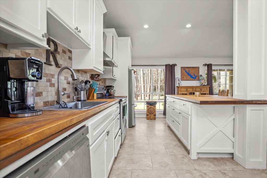 Secluded lakefront living surrounded by towering East Texas pines—this beautifully updated retreat on Lake Sam Rayburn blends privacy, comfort, and refreshed charm. Thoughtfully remodeled with a new roof (2024), updated electrical and HVAC (2020), plus new flooring and fresh interior finishes throughout. Warm, inviting details shine, including new cabinetry and stained butcher block countertops in the kitchen and bathrooms. The open-concept layout captures sweeping lake views and fills the living area with natural light, anchored by a cozy brick fireplace. The spacious kitchen offers an oversized island perfect for gathering. The primary suite provides a relaxing escape with generous closet space. Enjoy peaceful mornings and shaded evenings on the back patio overlooking the water. Property includes a $25,000 whole-home reverse osmosis system, 475' deep commercial well, insulated well house, and whole-home Generac generator with propane. Embrace the lake lifestyle with rare gem!!