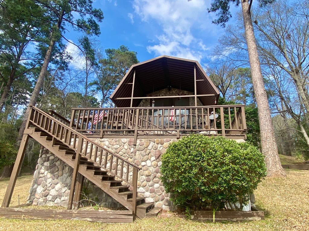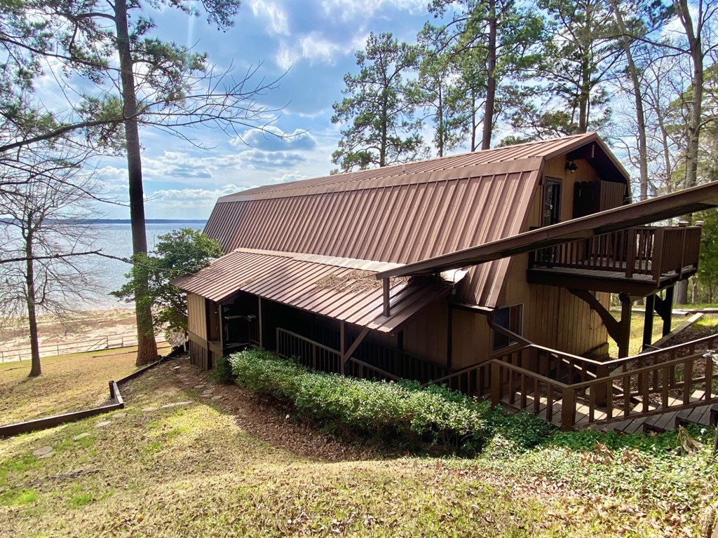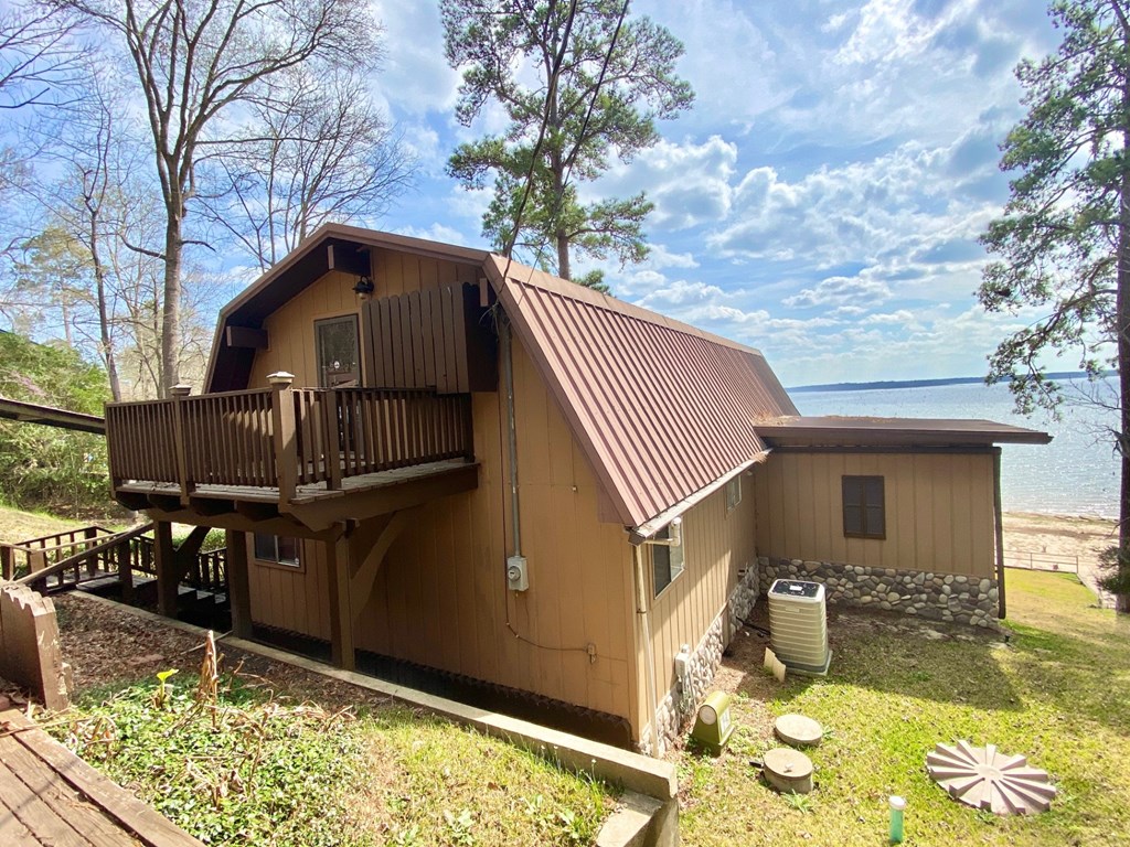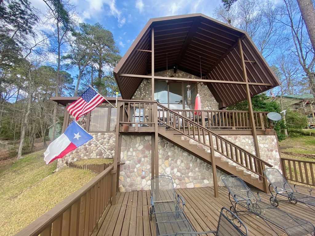 Wake up to breathtaking views of Lake Sam Rayburn and experience a lifestyle that feels like a permanent vacation. This charming 1,902 sq. ft. lakefront retreat features 3 bedrooms, 2 baths, & an upstairs loft, an open-concept layout that captures stunning water views through large windows. Step out from the living room onto the spacious upper deck overlooking the water, perfect for morning coffee or sunset gatherings. A second lower-level deck provides another incredible entertaining space after a day of boating or fishing on the lake. A retaining wall and stairs lead directly to the water's edge for easy lake access. Whether you're seeking a weekend getaway, second home, or full-time lakefront residence, this property offers more than a home—it delivers a lifestyle. 1200' carport/party area. In ground sprinkler system. 12x16 storage building, concrete circle drive. Paved road access. Most furnishing convey with sale including appliances. Lake life is calling you!