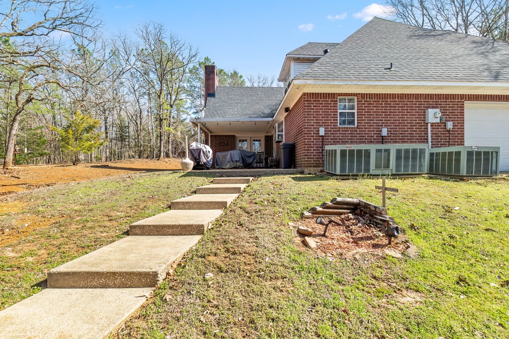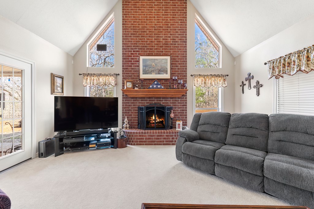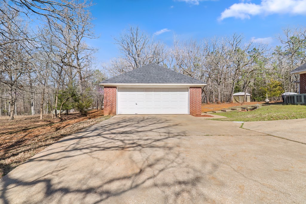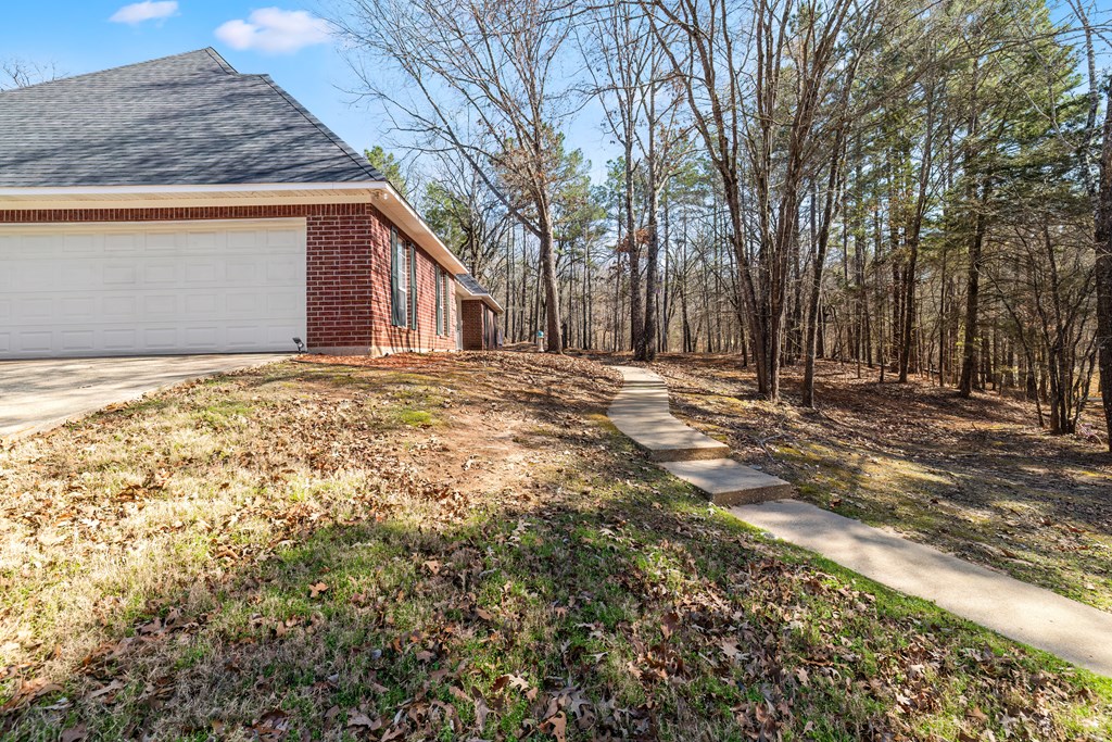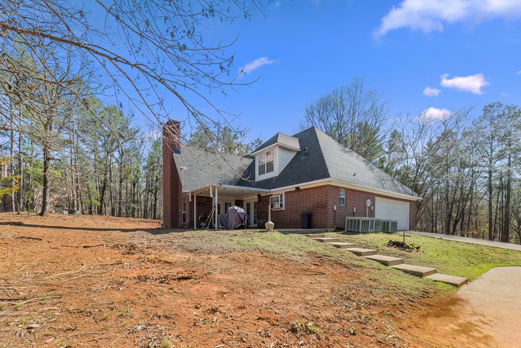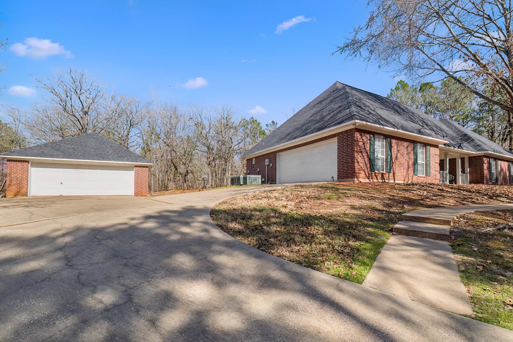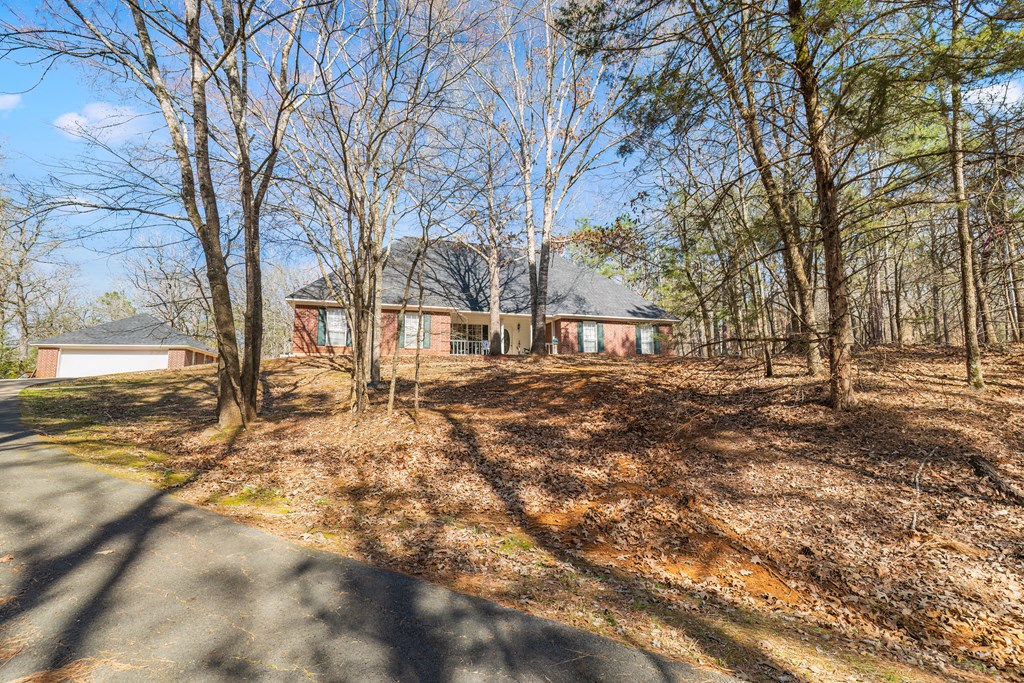 Privacy, space, and charm await! This custom 4 bed, 3 bath brick home sits on 4.74 acres of beautiful, wooded land in Apple Creek Subdivision. The thoughtful layout includes a primary suite and guest bedroom downstairs, with two additional bedrooms and full bath upstairs overlooking the living room below with impressive tall ceilings. Enjoy nature right in your backyard with access to the creek and relax on the covered back porch. Bonus features include a 2-car detached brick garage on a slab, offering endless possibilities for storage, projects, or hobbies. Private, peaceful and full of potential!