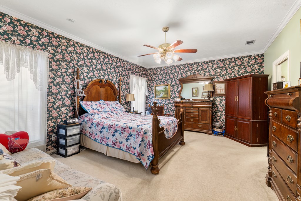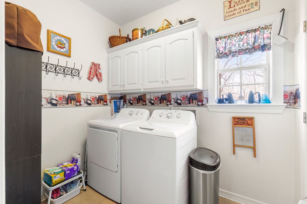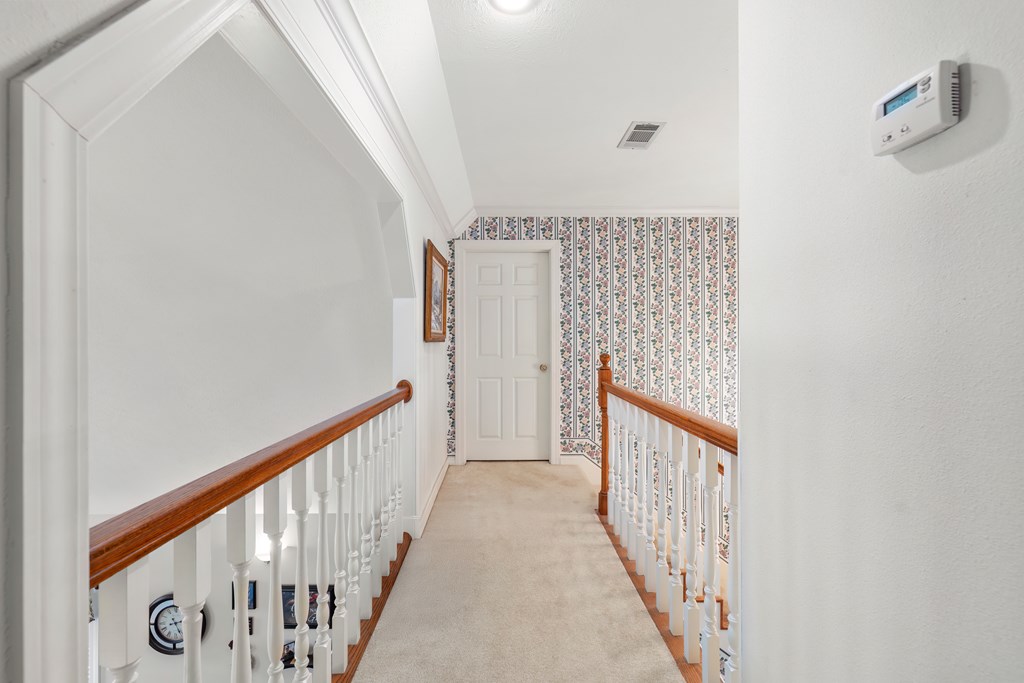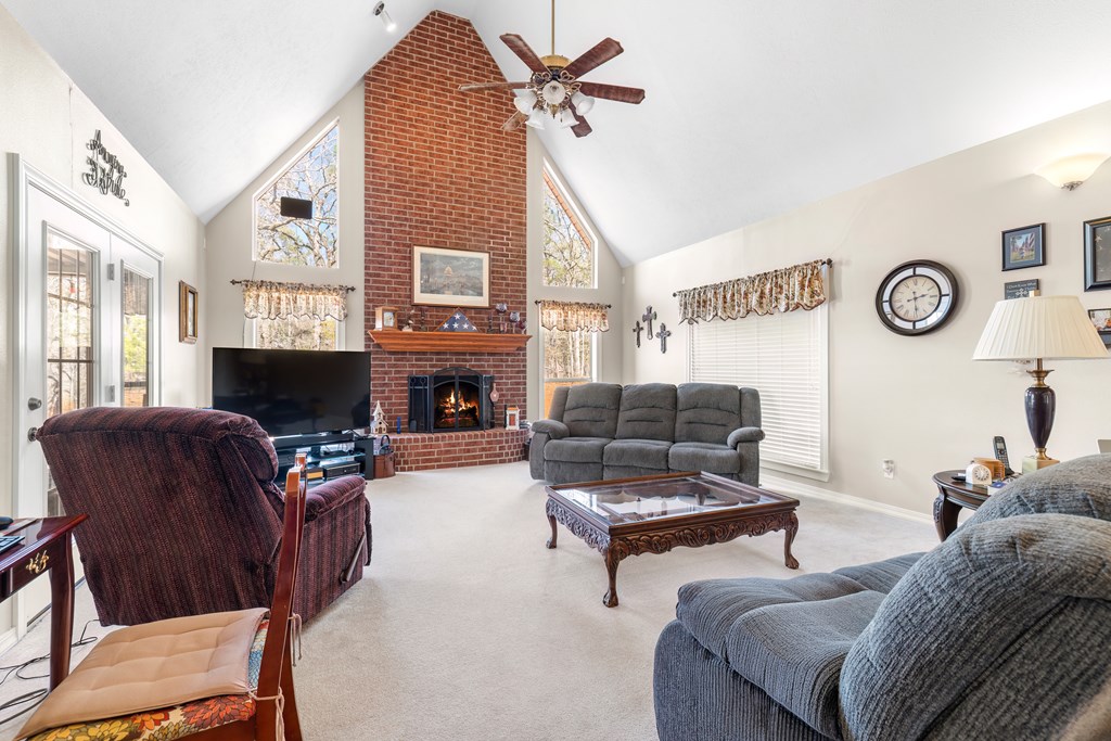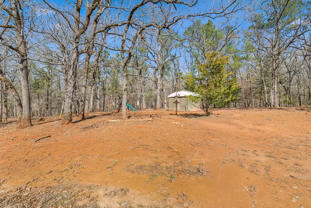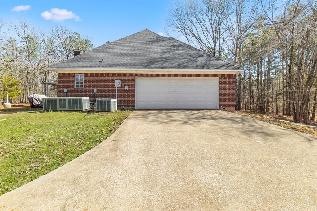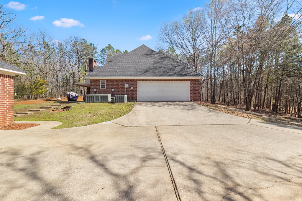 Privacy, space, and charm await! This custom 4 bed, 3 bath brick home sits on 4.74 acres of beautiful, wooded land in Apple Creek Subdivision. The thoughtful layout includes a primary suite and guest bedroom downstairs, with two additional bedrooms and full bath upstairs overlooking the living room below with impressive tall ceilings. Enjoy nature right in your backyard with access to the creek and relax on the covered back porch. Bonus features include a 2-car detached brick garage on a slab, offering endless possibilities for storage, projects, or hobbies. Private, peaceful and full of potential!