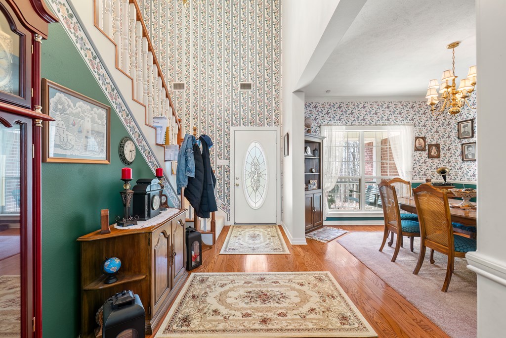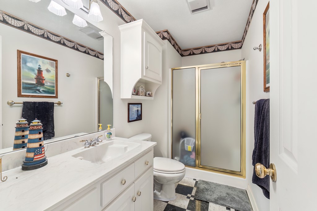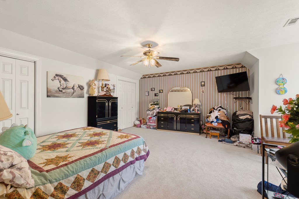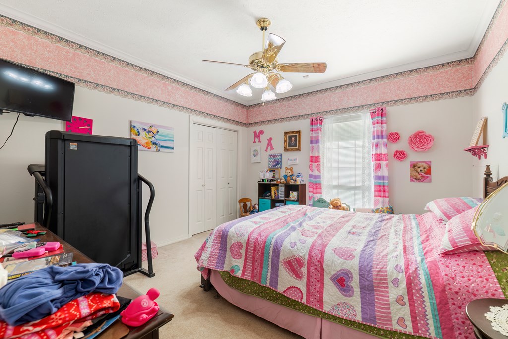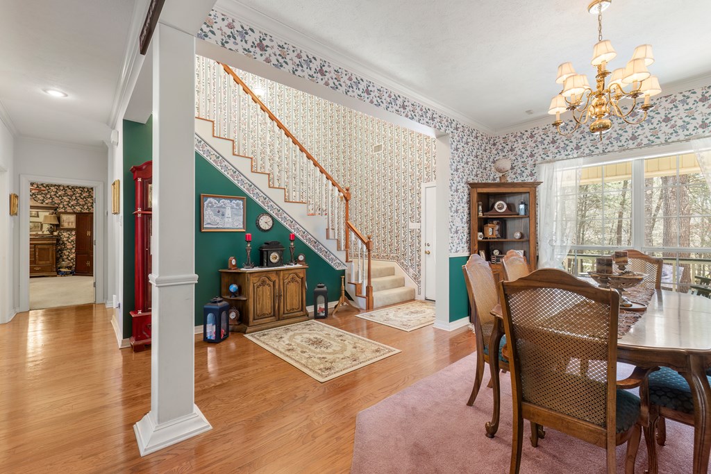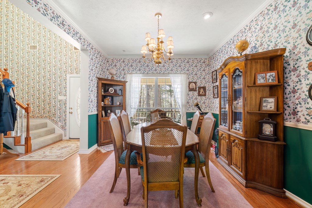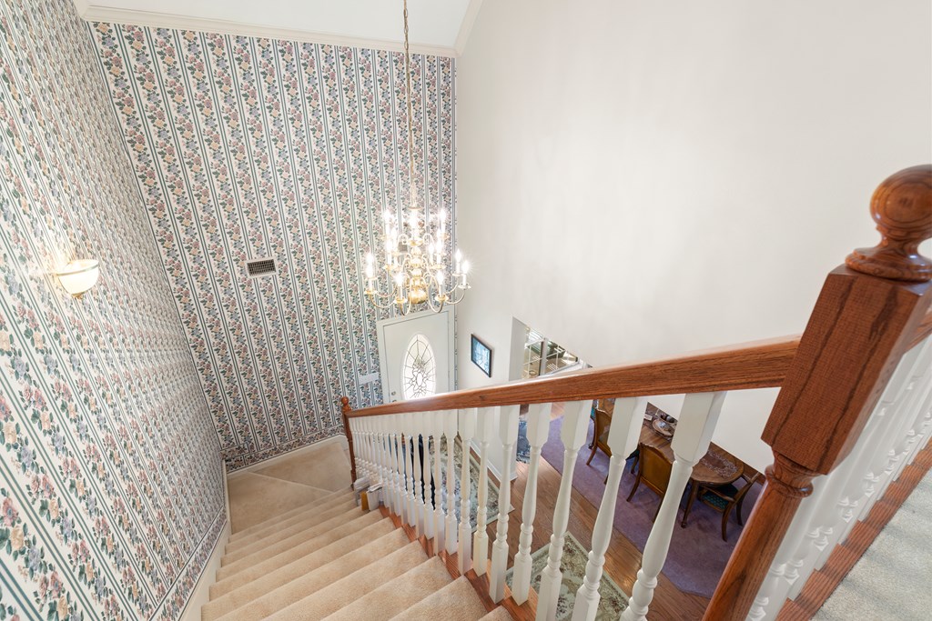 Privacy, space, and charm await! This custom 4 bed, 3 bath brick home sits on 4.74 acres of beautiful, wooded land in Apple Creek Subdivision. The thoughtful layout includes a primary suite and guest bedroom downstairs, with two additional bedrooms and full bath upstairs overlooking the living room below with impressive tall ceilings. Enjoy nature right in your backyard with access to the creek and relax on the covered back porch. Bonus features include a 2-car detached brick garage on a slab, offering endless possibilities for storage, projects, or hobbies. Private, peaceful and full of potential!