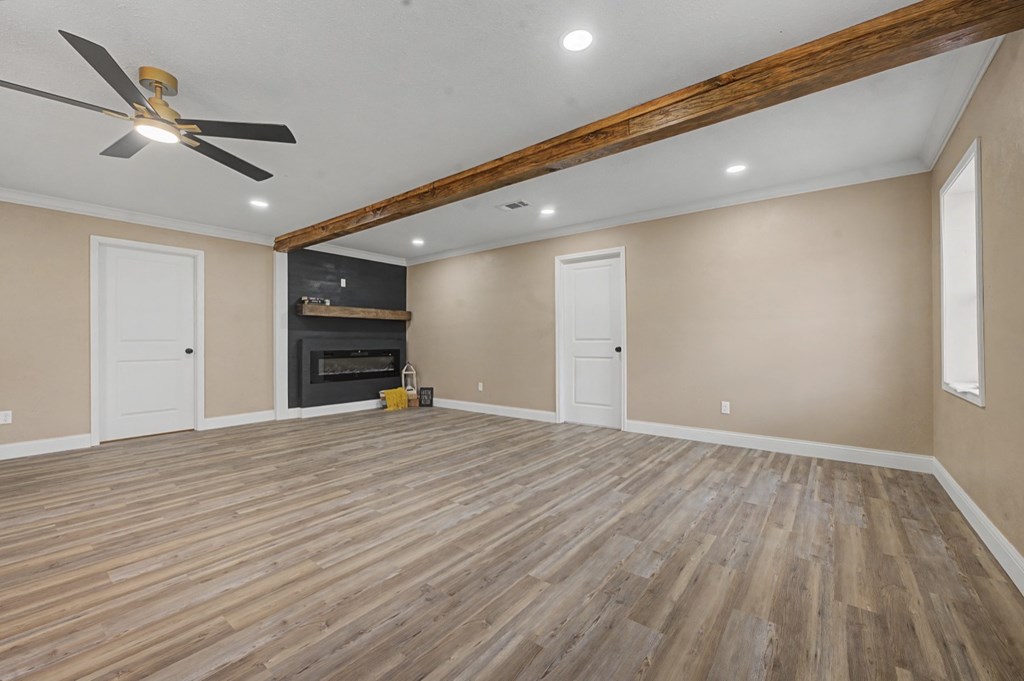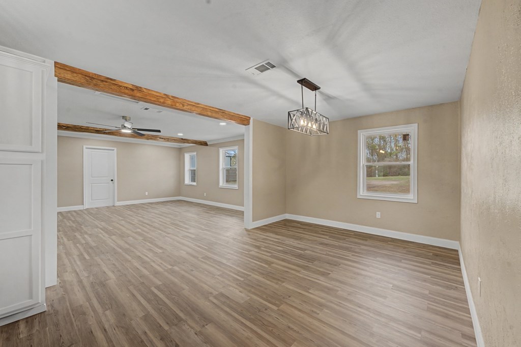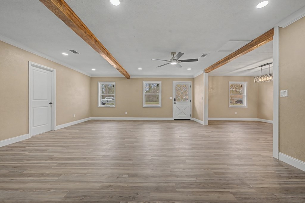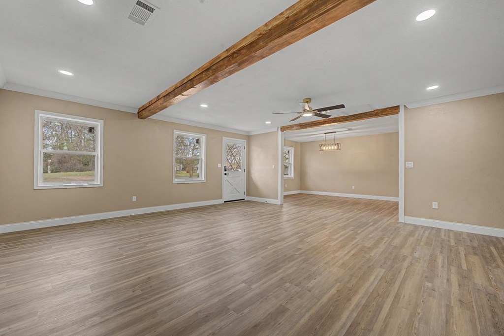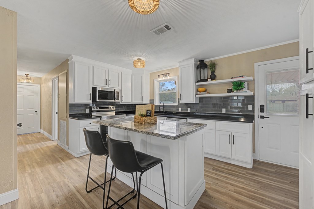 Completely remodeled from top to bottom, this stunning 4-bedroom, 3-bath home offers modern comfort on .58 beautiful acres shaded by mature trees in the desirable Huntington ISD. Inside you'll find new vinyl plank flooring throughout, a stylish living area with an electric fireplace, and an updated layout designed for everyday living and entertaining. The spacious primary suite features a luxurious bath with soaking tub, walk in shower, and large walk-in closet. The exterior showcases a timeless brick and Hardie plank combination, blending durability with curb appeal. A rare move-in-ready property with space, style, and a peaceful country feel.