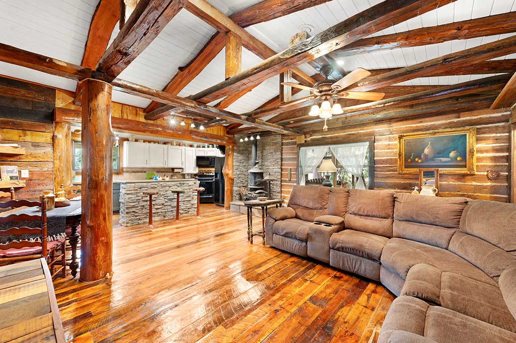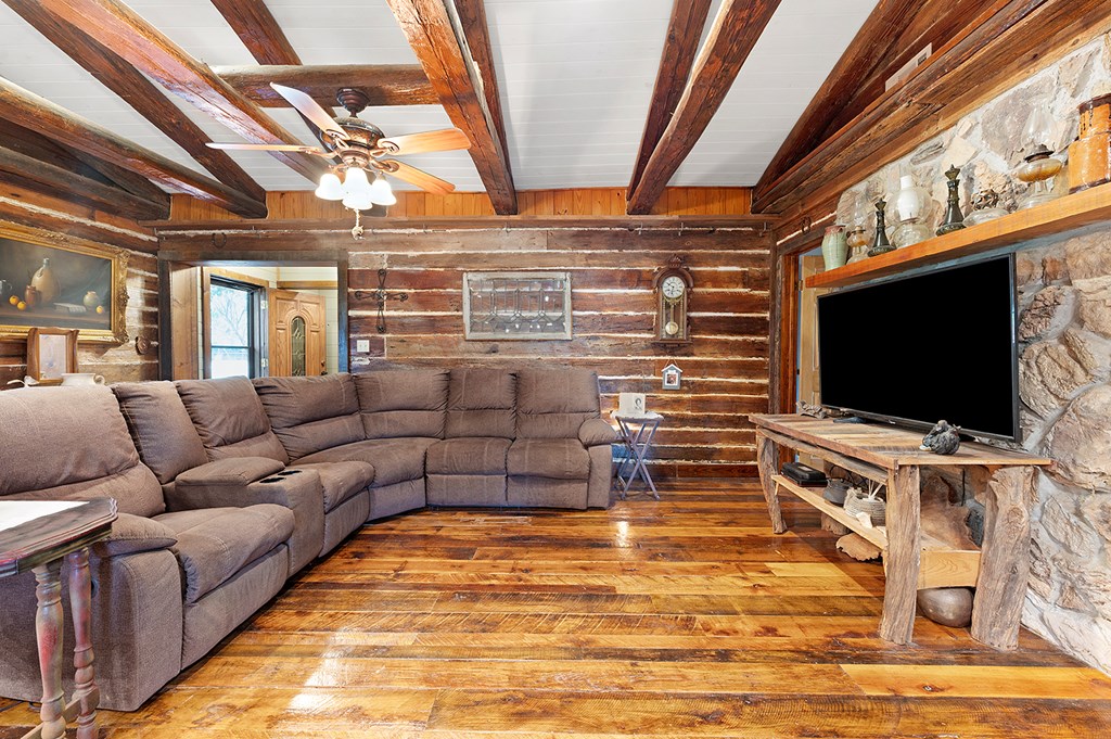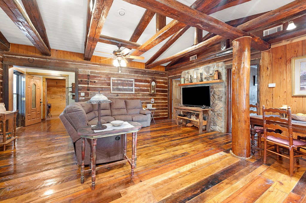Step into a one-of-a-kind 4-bedroom, 2,610 SF custom log ranch home, thoughtfully converted from a 150+ year-old barn. Western character and rustic elegance flow throughout, highlighted by massive hand-hewn beams, striking stonework, and multiple fireplaces. The master suite is a true retreat, featuring its own stone fireplace with solid wood mantel, a walk-in shower, and custom copper sink and countertop. Inside, you'll also find an additional wood burning stove, while outdoors an inviting stone fireplace sets the stage for gatherings by the pool with Trex decking. Designed for both comfort and functionality, this ranch offers exceptional amenities. The land is fully fenced and cross-fenced across 32.7 acres, providing both open pasture and secure enclosures for livestock. This property is more than a home—it's a lifestyle. Don't miss your chance to own this remarkable ranch! Adjoining land available to purchase.