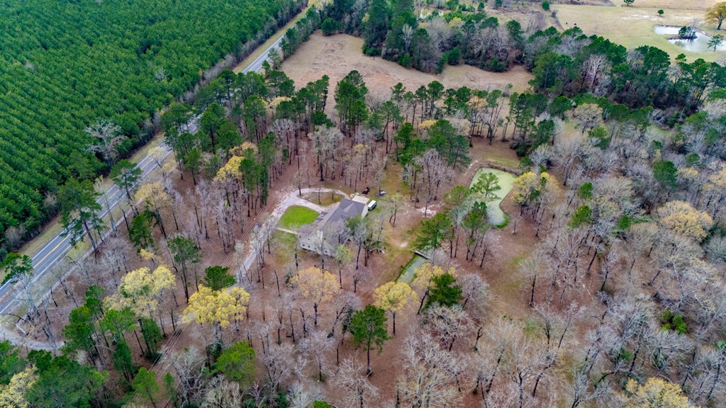Charming country home situated on 9.72 beautiful acres with scattered mature trees providing privacy and peaceful surroundings. This spacious property features 3 bedroom 3 full bathrooms and 2 half baths, formal dining area, Family room, and upstairs office/storage room. Concrete drive from highway to attached garage and carport. Plenty of acreage to ensure no neighbors are close. Property has Pond with overflow steam behind house. House could be sold with less acreage.