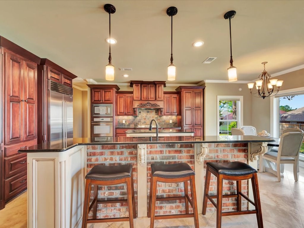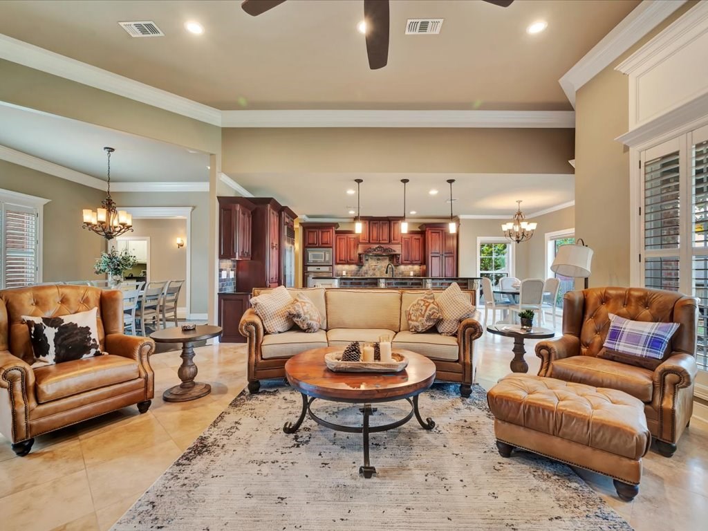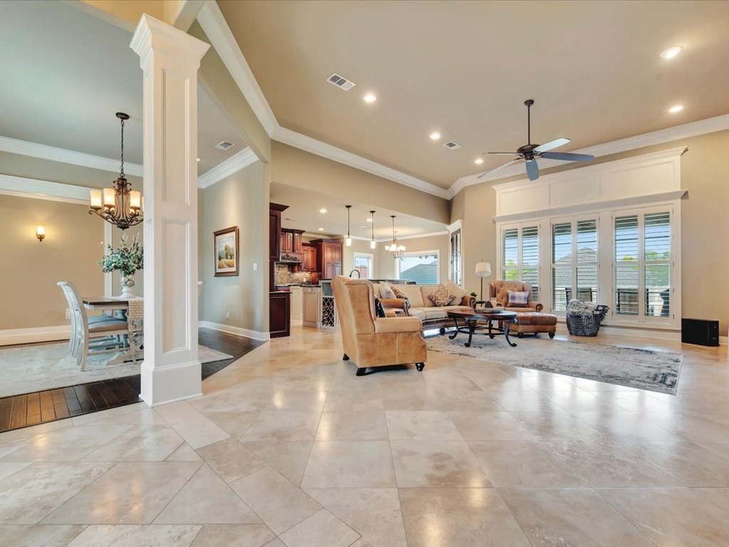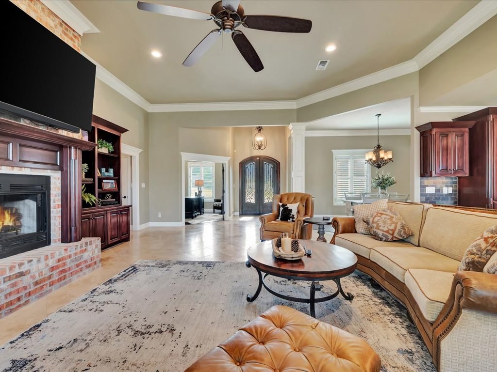 Welcome to this stunning New Orleans style 2012-built home featuring an elegant blend of stucco and brick. Meticulously maintained, this four-bedroom, three-bathroom residence boasts an inviting open concept design. As you enter, you are greeted by a spacious gathering area with practical tile floors and soaring ceilings, highlighted by picture windows that fill the space with natural light and offer serene views of the fully fenced backyard. The kitchen is equipped with recently replaced and elevated appliances and seamlessly flows into the living area complete with a cozy fireplace and built-ins. A dedicated front office provides a quiet retreat for work or study. With two bedrooms and a full bathroom thoughtfully positioned on one side of the home, the luxurious primary suite offers privacy on the opposite side of the home, while an additional fourth bedroom and full bathroom await upstairs. Whole home generator included. Roof replaced in 2024. HVAC system replaced in 2025.
