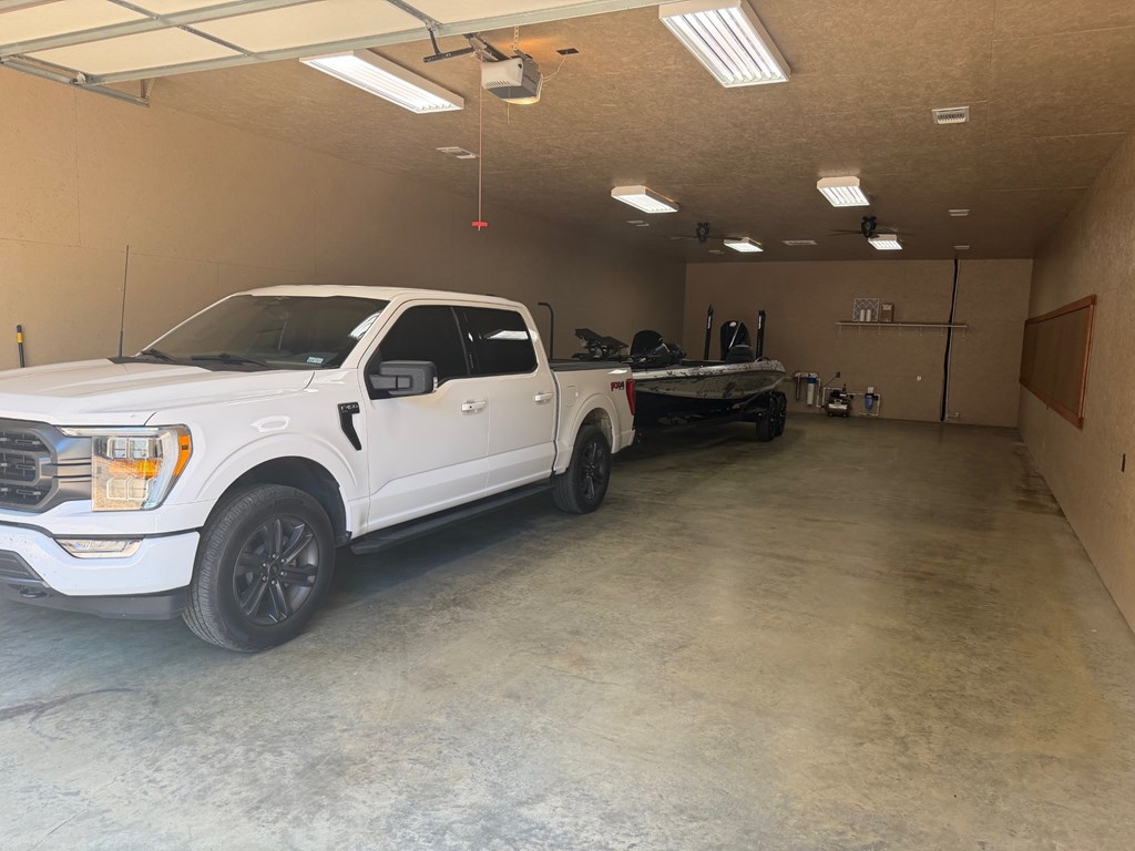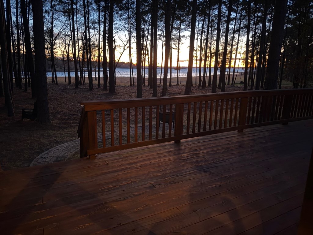 Designed with rustic architectural charm, the home features warm, inviting details including a cozy wood-burning fireplace, perfect for relaxing after a day on the water. Step outside and enjoy the expansive wrap-around porch and large back deck, offering plenty of space for entertaining or simply taking in the peaceful lake views. Situated on an impressive 2.3 acres, the property is cleared and gently slopes to the water, providing easy access and a beautiful setting for outdoor recreation. The level terrain makes it perfect for gatherings, fishing, or enjoying nature. A standout feature is the oversized 1,440 sq. ft. air-conditioned and heated garage, built to accommodate two boats with trucks attached—ideal for serious lake enthusiasts. Built with quality in mind, the home includes a durable post-tension slab foundation and architectural shingles for long-lasting performance. Whether you're seeking a serene retreat or a permanent lakeside residence, this property works for both.