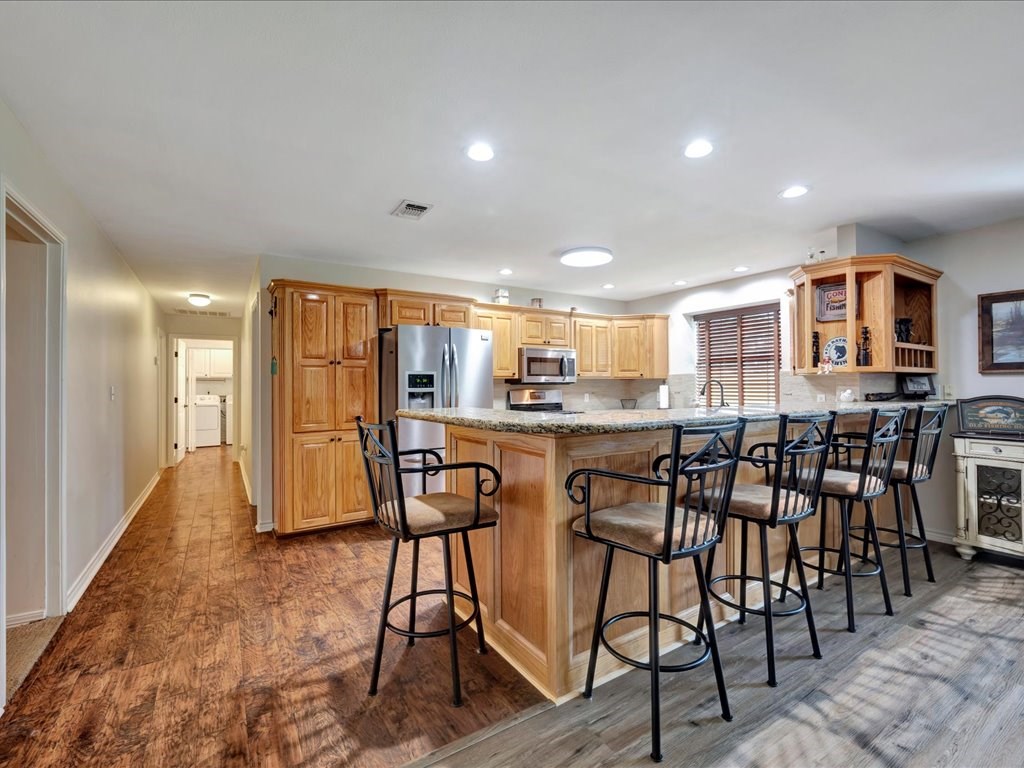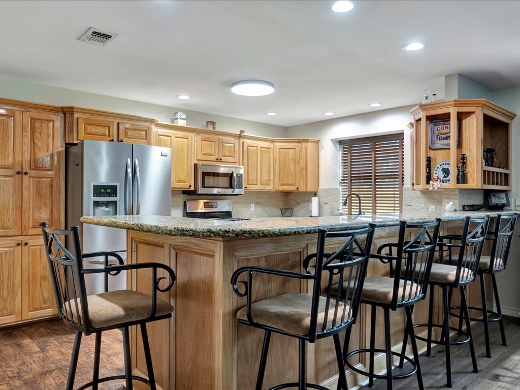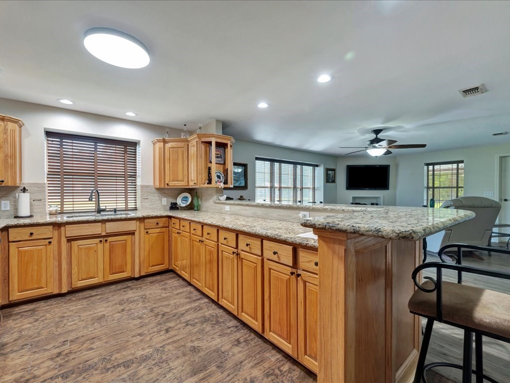 Welcome to a one-of-a-kind barndominium retreat on just under 4 beautiful acres, where comfort and versatility come together. This open-concept home features an inviting layout that flows into a spacious, fully equipped shop—perfect for hobbies or projects. A heated and cooled office makes working from home easy, while the attached entertainment suite with guest quarters offers its own private space. Enjoy gatherings in the second full kitchen, living and dining areas, and a large roll-up door leading to a screened-in porch. Outside, you'll find an RV cover with full hookups, a covered lean-to, and a unique 3-story treehouse with electricity. A place to live, work, and enjoy it all. Schedule your showing today and come experience it for yourself.