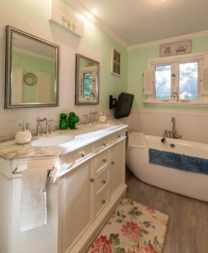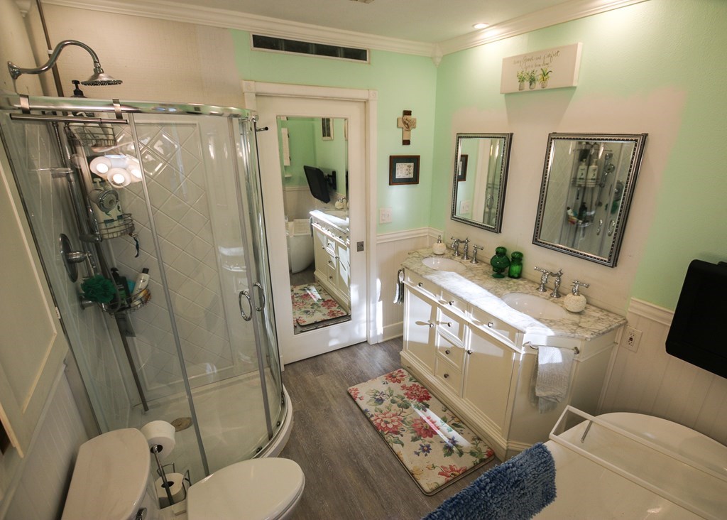 Welcome to Grove Gardens, a timeless East Texas property originally built in 1953 for Dr. W.D. and Sara Jane Thames and lovingly maintained by its current owner for 26 years. This thoughtfully restored home has been rebuilt down to the floorboards with updated wiring, insulation, additional piers, and reinforced joists. Refinished oak hardwood floors flow through most of the home, complemented by fresh paint, updated doors, cedar-lined closets, skylights, and transom lighting. The kitchen features custom cabinetry, while both full bathrooms have been completely renovated. Enjoy modern conveniences like fiber optic internet, gas appliances, instant hot water, recessed LED lighting, and a central fireplace. Outdoors offers a greenhouse, stone terrace, chicken house, storage building, and lush, low-maintenance landscaping. Additional highlights include a cedar fence, updated garage doors, attic access, and security-ready Wi-Fi cameras.