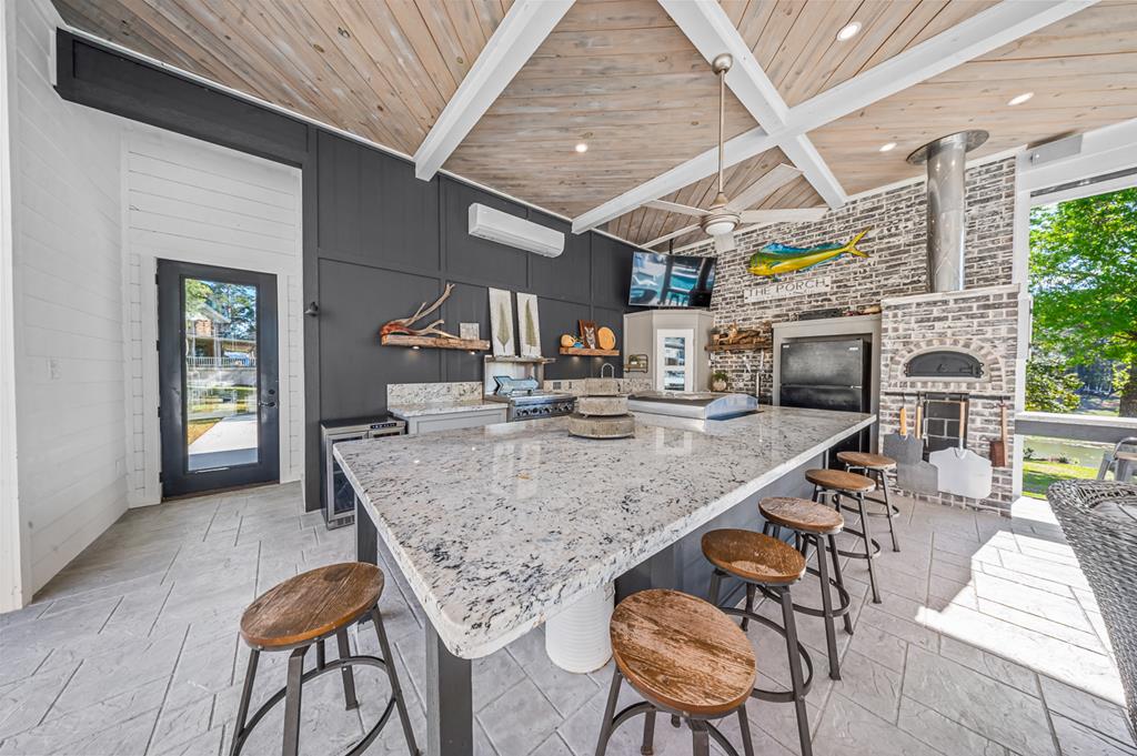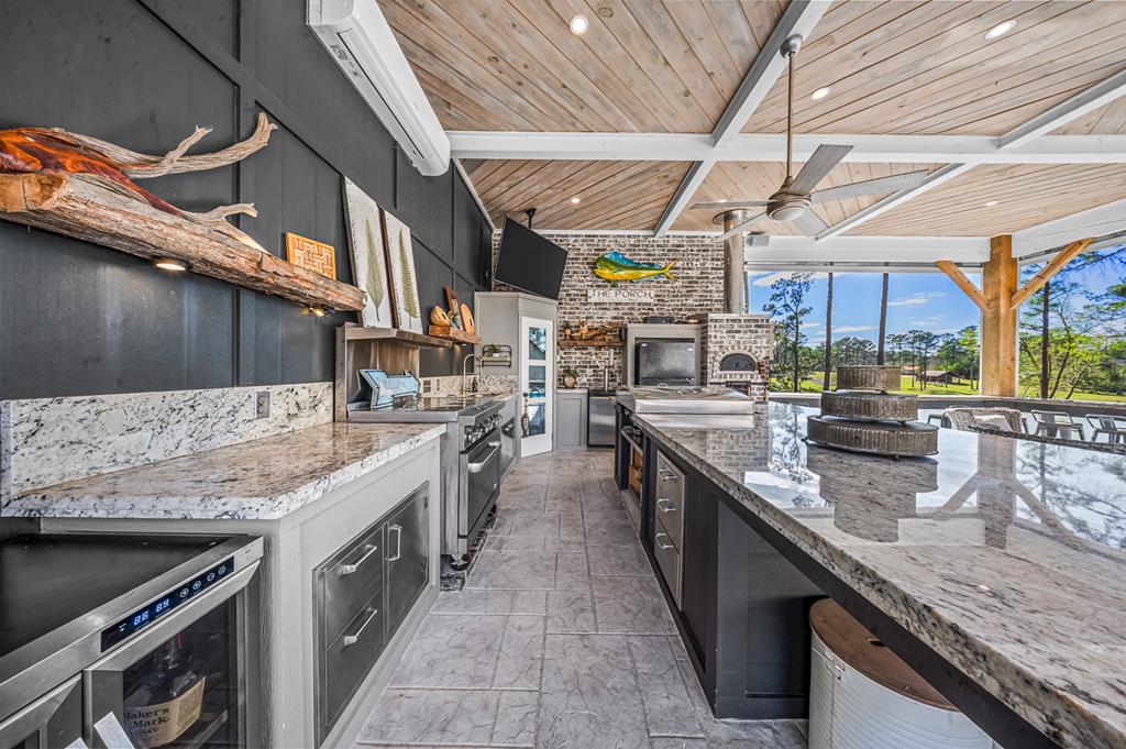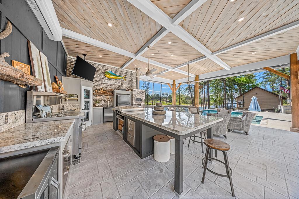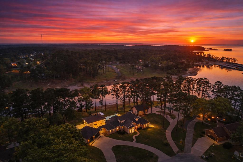 Situated on approximately .58 acres, this exceptional year-round waterfront property offers breathtaking sunset views and refined living at its finest. Featuring 5 bedrooms, 3 full baths, and 2 half baths, the thoughtfully designed layout includes spacious living areas and a 3-car garage, ideal for both everyday comfort and entertaining. The primary suite is a true retreat, complete with a cedar closet and an expansive walk-in closet that any lady would envy. Step outside to a true resort-style setting with an outdoor kitchen complete with a pizza oven, 36” built-in griddle, commercial-grade stove and oven, and heavy-duty motorized screens for year-round enjoyment. The backyard oasis continues with a stunning pool and hot tub, enhanced by both a heater and chiller for all-season use. A 45 KW whole home generator provides added peace of mind and uninterrupted comfort. This property seamlessly blends luxury, functionality, and premier waterfront living with unforgettable sunsets. (+More)