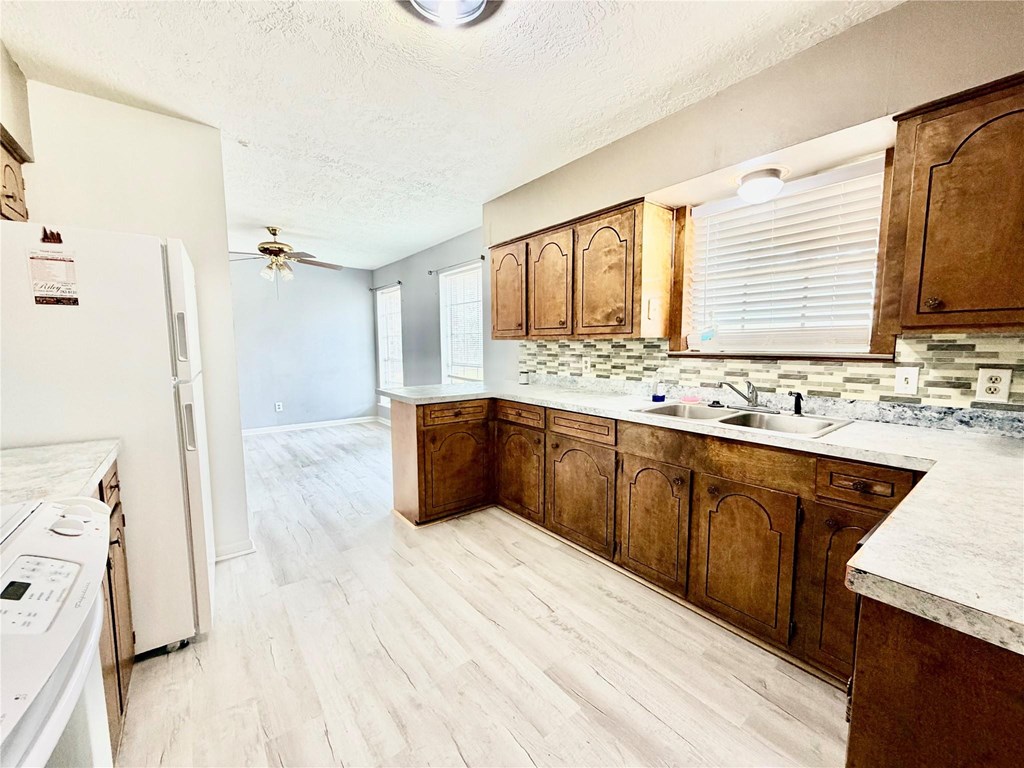 Welcome home to this charming 3-bedroom, 1.5-bath brick home located in a highly desirable, well-established neighborhood! Featuring a spacious and inviting layout, the kitchen offers a convenient breakfast bar that opens seamlessly to the living room—perfect for entertaining and everyday living. The cozy wood-burning fireplace creates a warm focal point in the main living area, ideal for relaxing evenings at home. Beautiful new flooring has recently been installed, adding a fresh, modern touch throughout. Outside, you'll find a generous backyard with plenty of room to play, garden, or host gatherings, along with a covered porch that's perfect for enjoying your morning coffee or unwinding at the end of the day. New architectural shingle roof added this year! A 2-car carport provides ample covered parking and additional storage space. This home offers comfort, functionality, and location all in one. Don't miss the opportunity to make it yours!