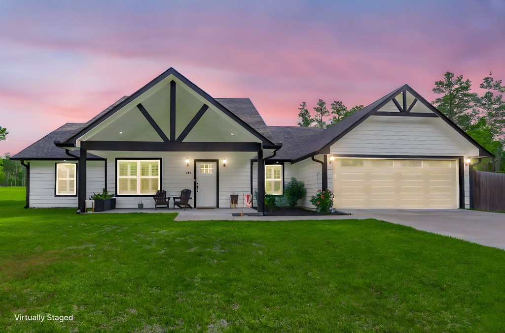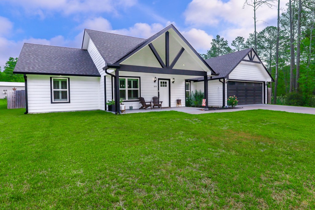 Welcome home- this modern farmhouse is beautifully crafted with quality & convenience in mind. Finished in 2022 and set on over an acre of land, this stunning 3-bedroom, 2-bathroom home offers the perfect blend of style, comfort, & functionality. Step inside to an expansive, open-concept layout designed for both relaxation & entertaining. Natural light pours into the spacious living areas, highlighting the clean lines & warm finishes that define the modern farmhouse design. The master suite is truly a sanctuary. Thoughtfully designed & inviting-it features a luxurious soaker tub and walk in shower that instantly transports you to a private retreat; your own personal escape at the end of the day. Outside, enjoy endless possibilities to entertain or relax with a pergola and custom fire pit for hosting gatherings, or simply enjoying the quiet beauty of your land. Inground sprinklers, Plantation Shutters, no restrictions- too many features to name. Book private showing today.