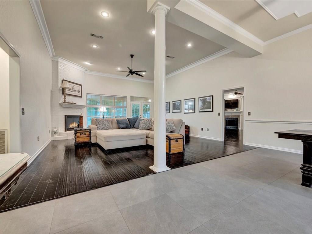 Enjoy premier golf course living on the 13th fairway in Crown Colony. This beautifully updated one-story home offers 2,677 sq ft with 3 spacious bedrooms and 2 bathrooms, thoughtfully designed to showcase its serene setting. Multiple living areas provide flexibility for everyday living and entertaining, while the formal dining room and breakfast nook offer welcoming spaces—many with scenic course views. Stylish new flooring runs throughout, adding warmth and continuity. The expansive primary suite features a large walk-in closet, dual vanities, soaking tub, and separate shower. Relax on the covered patio and enjoy peaceful fairway views, perfect for morning coffee or evening unwinding. A fenced backyard provides added privacy, and the attached two-car garage completes this exceptional property.