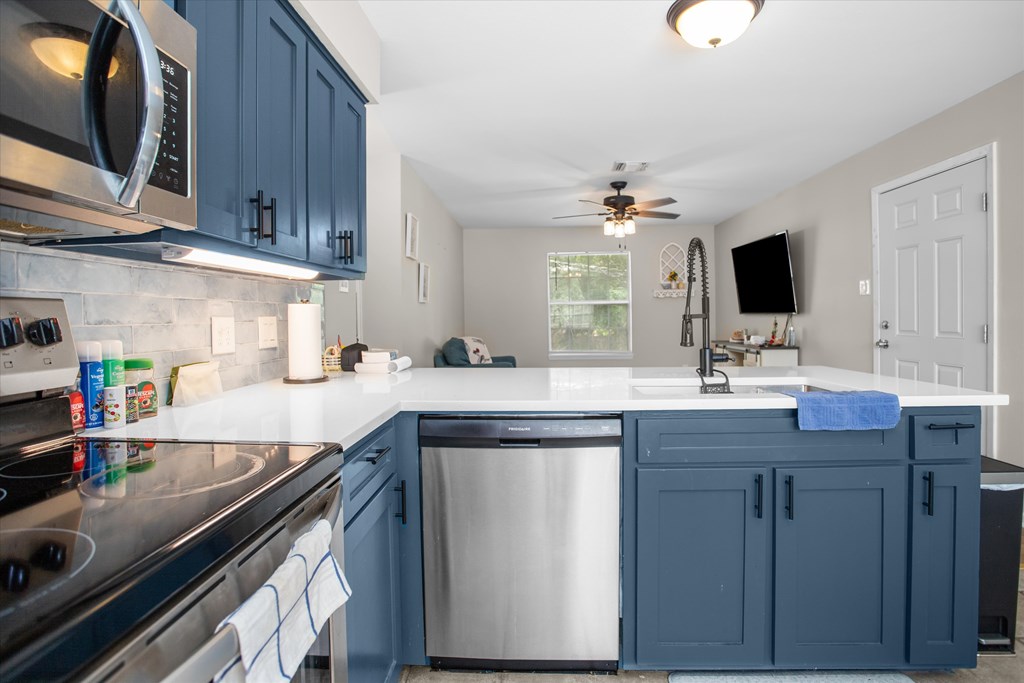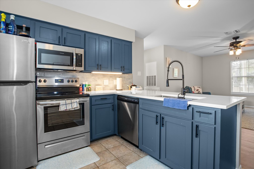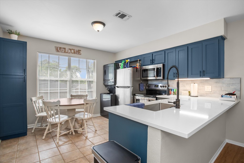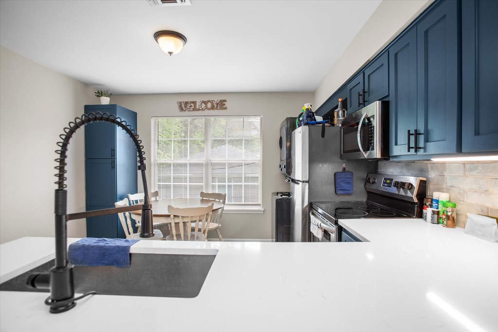 Recently renovated 2-bedroom, 1.5-bath condo conveniently located near Stephen F. Austin State University in Nacogdoches. This updated unit features a stylish kitchen with eye-catching blue cabinetry, modern finishes, and a functional layout. One of the bedrooms showcases a unique statement wall, adding character and charm. Ideal for students, investors, or anyone seeking low-maintenance living in a prime location close to campus, dining, and shopping. ***Fridge and washer/dryer included***