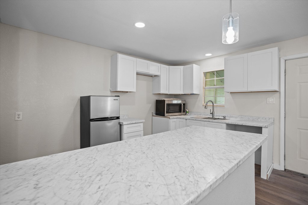 Remodel started—now it's your opportunity to finish and make it your own! Located in Huntington ISD, this 1-bedroom, 1-bath home offers approximately 856 square feet on a spacious 1/4-acre lot. Updates include new laminate flooring, kitchen cabinets, countertops, and an updated shower. The backyard features a fenced area and a large storage shed. Being sold AS IS—bring your vision and complete the transformation!