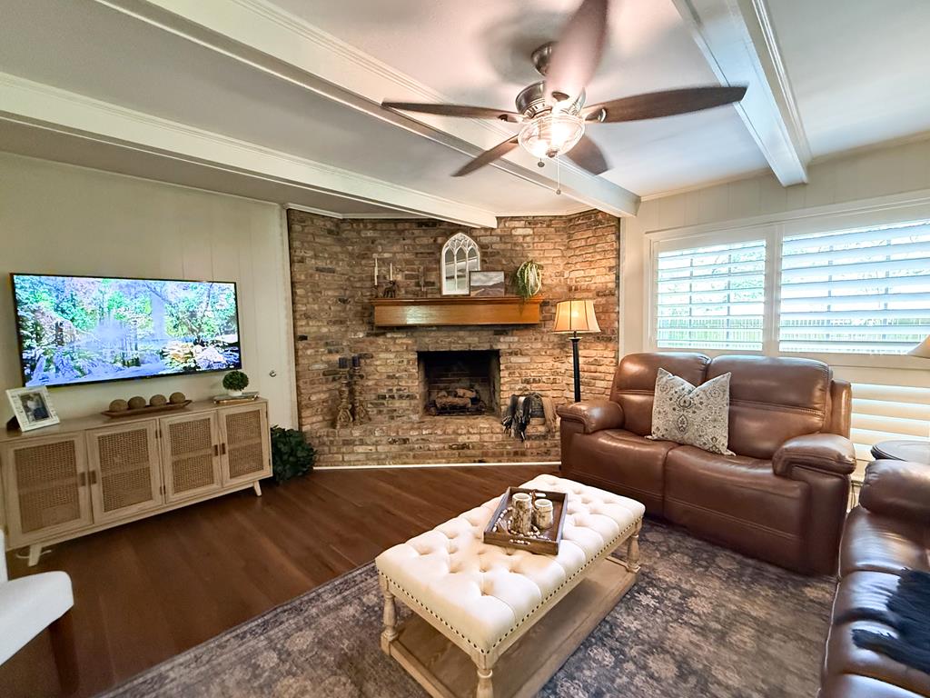 This is the Nacogdoches home you won't want to miss! Welcome to 1720 York Drive, filled with quaint charm and character at every turn. From the cozy brick gas fireplace to the covered front porch; perfect for enjoying a cool evening with friendly neighbors. This home feels inviting from the moment you enter. Inside, an ideal flow creates a spacious yet warm feel, with kitchen and living areas that connect seamlessly. Large rooms and never-ending storage, including walk-in closets and two walk-in attic spaces upstairs, offer easy organization. The primary suite features a patio sanctuary overlooking the vast backyard. Enjoy a yard perfect for entertaining, relaxing, or gardening, with mature trees offering privacy while still in the heart of Nacogdoches. Custom shutters, shades, and picturesque windows fill the home with natural light. Thoughtfully updated in 2024, including the water heater, double oven gas range, and sprinkler system. This home has it all, schedule your showing today!